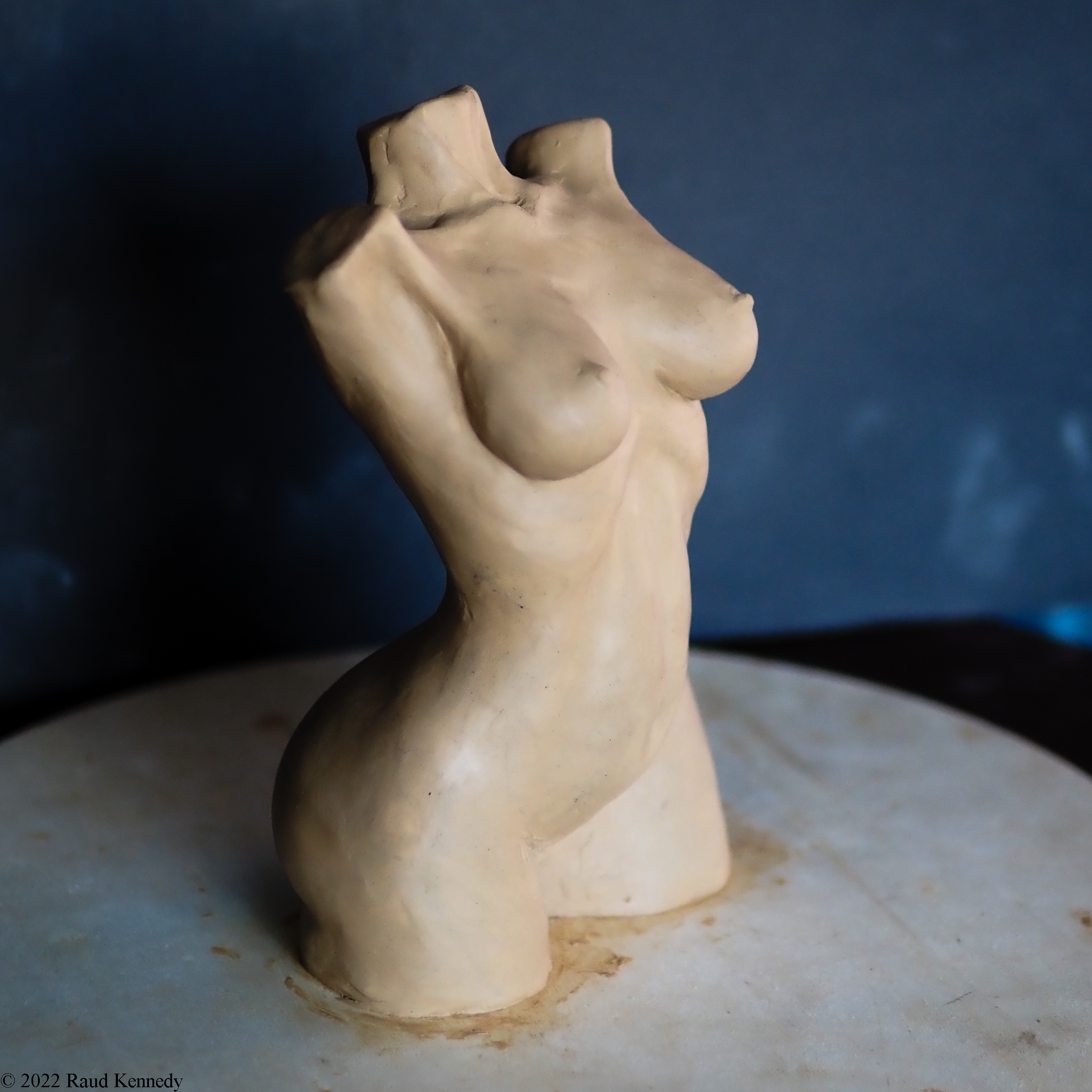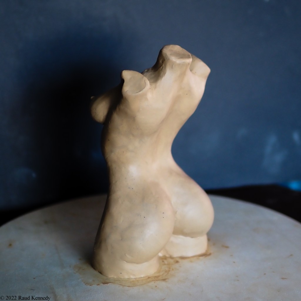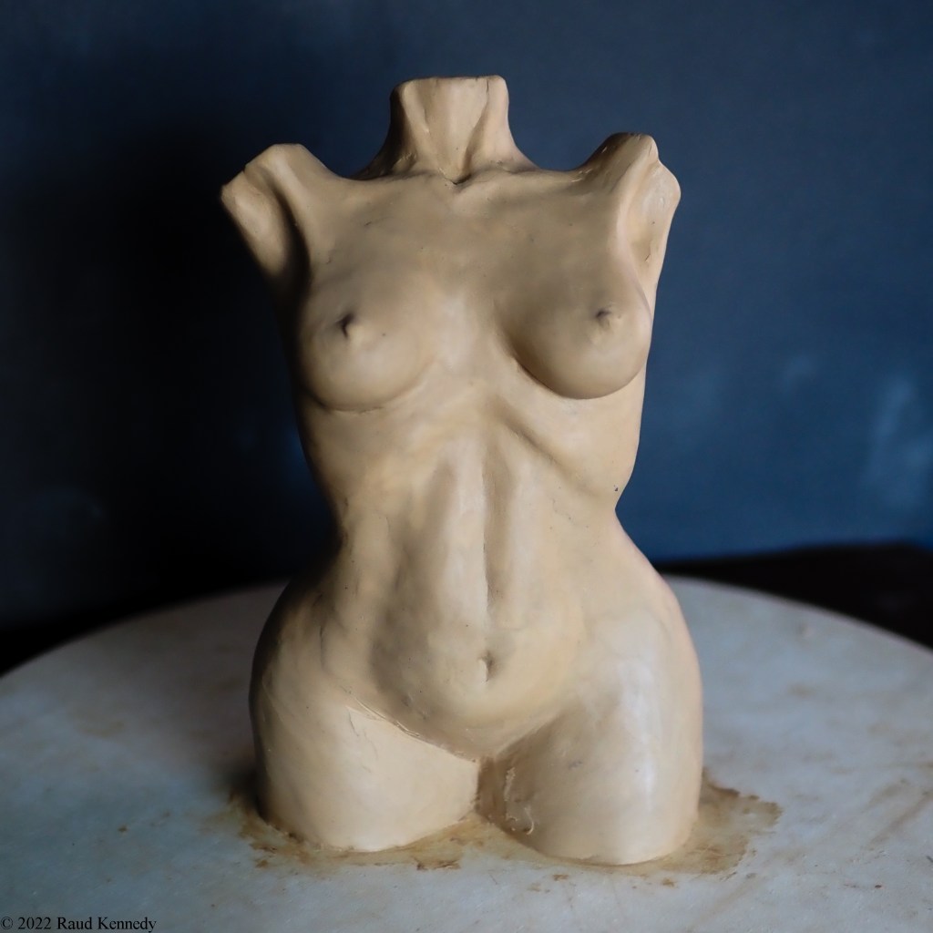These photos are of a torso I’ve sculpted with the intention of making a mold of it that I can then use to cast wax versions that I will turn into candles.