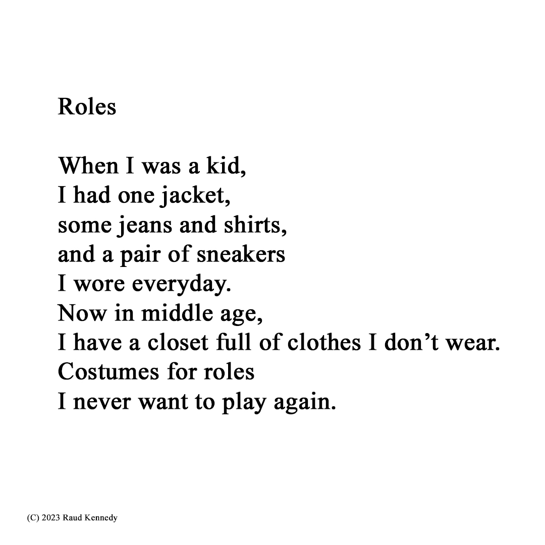 Roles Share:TweetMoreShare on Tumblr Click to share on Reddit (Opens in new window) Reddit Click to email a link to a friend (Opens in new window) Email Like Loading... Related One thought on “Roles” Add yours Painfully true. LikeLike Reply Leave a comment Cancel reply Δ